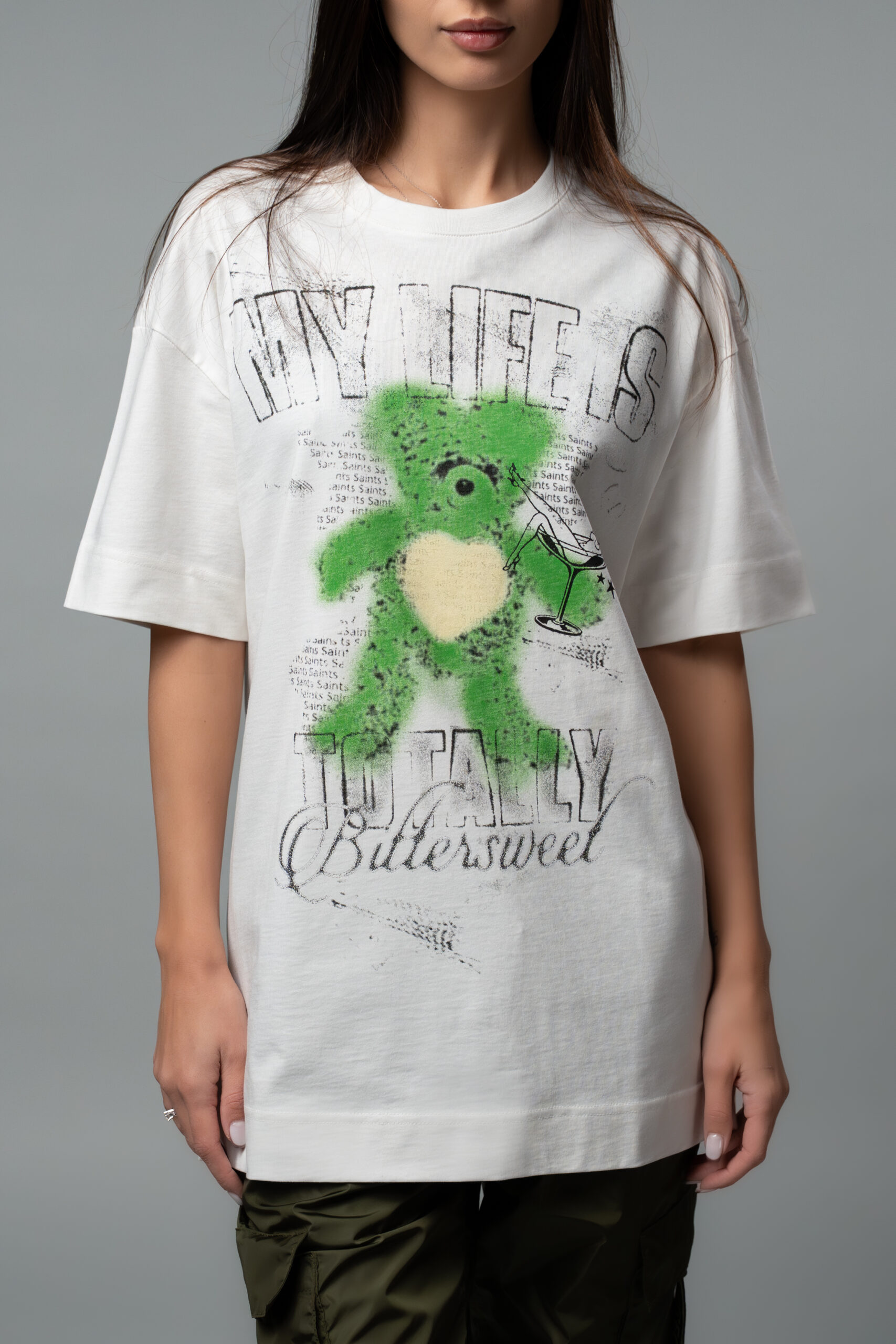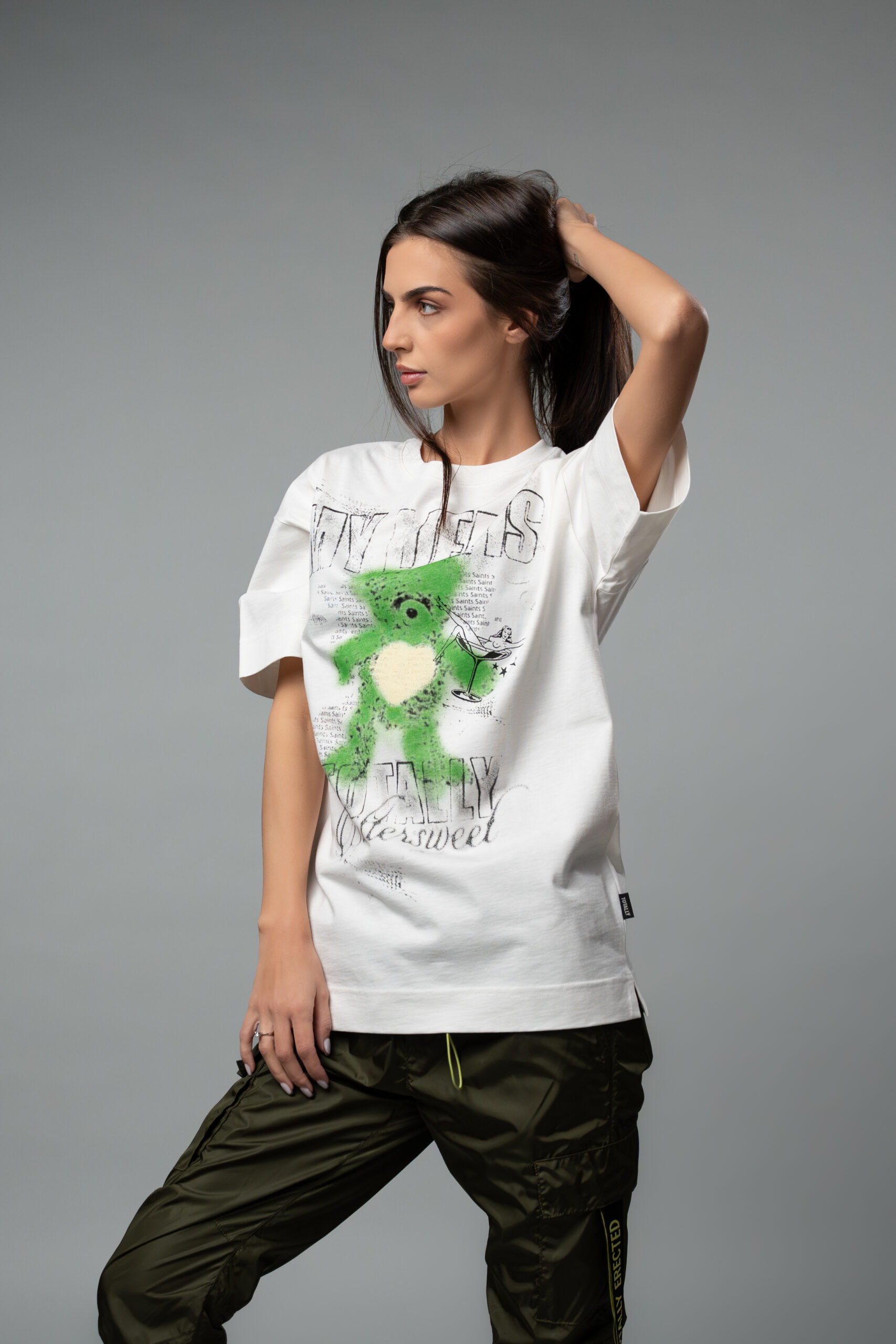 Овърсайз тениска с дизайн от TOTALLY ERECTED. Моделът е изработен от 100% мек и дишащ памук, съчетавайки удобство и модерен дизайн. Отличава се с уникален дизайнерски принт отпред и стилен акцент на гърба за завършен и впечатляващ вид.