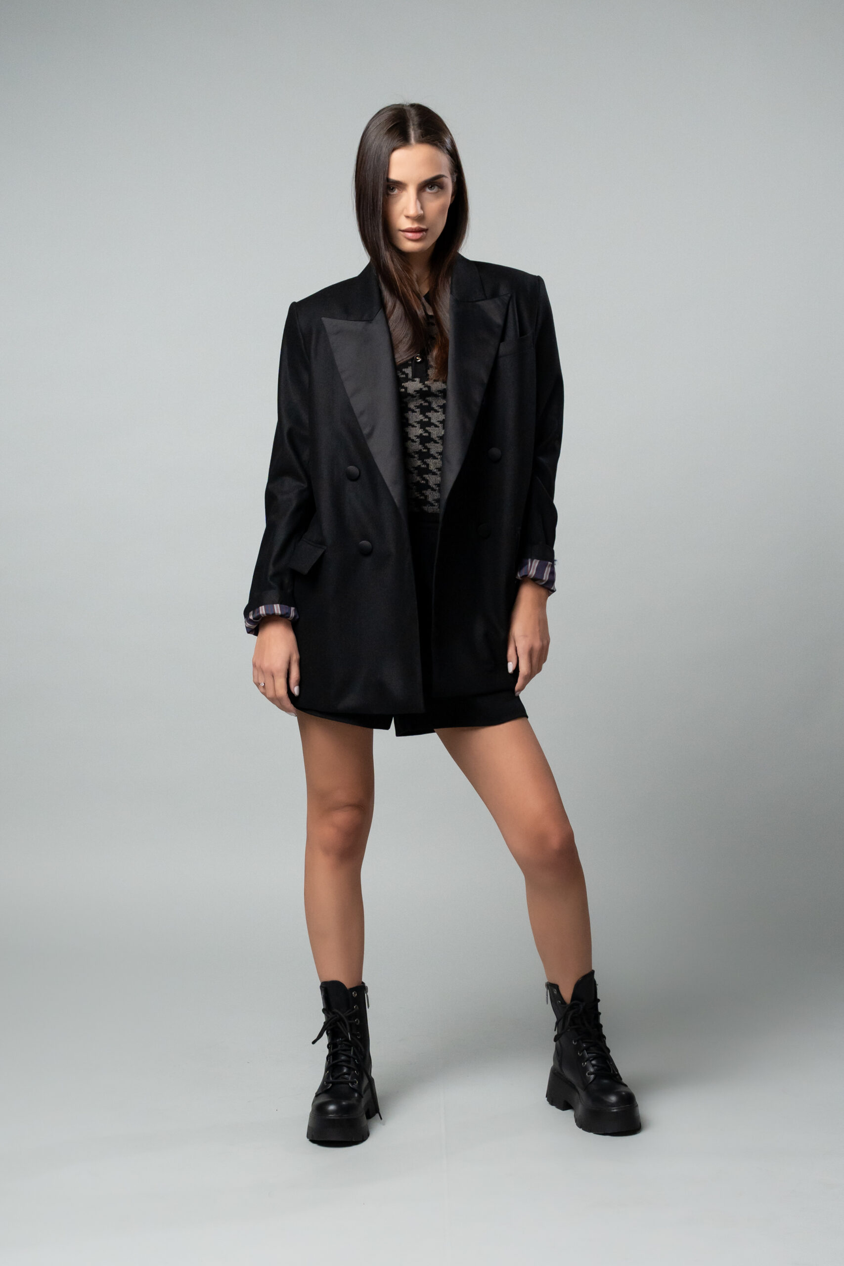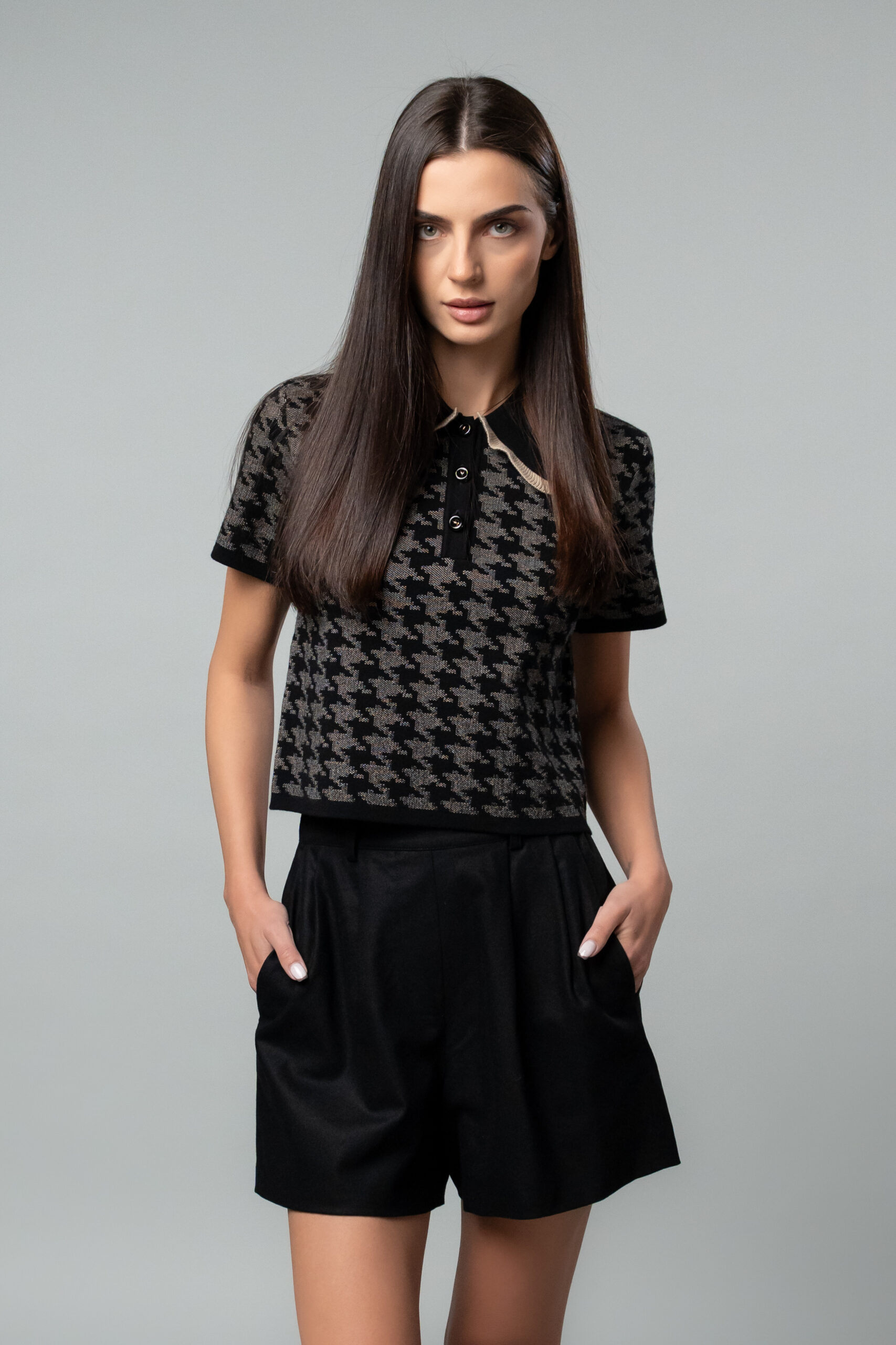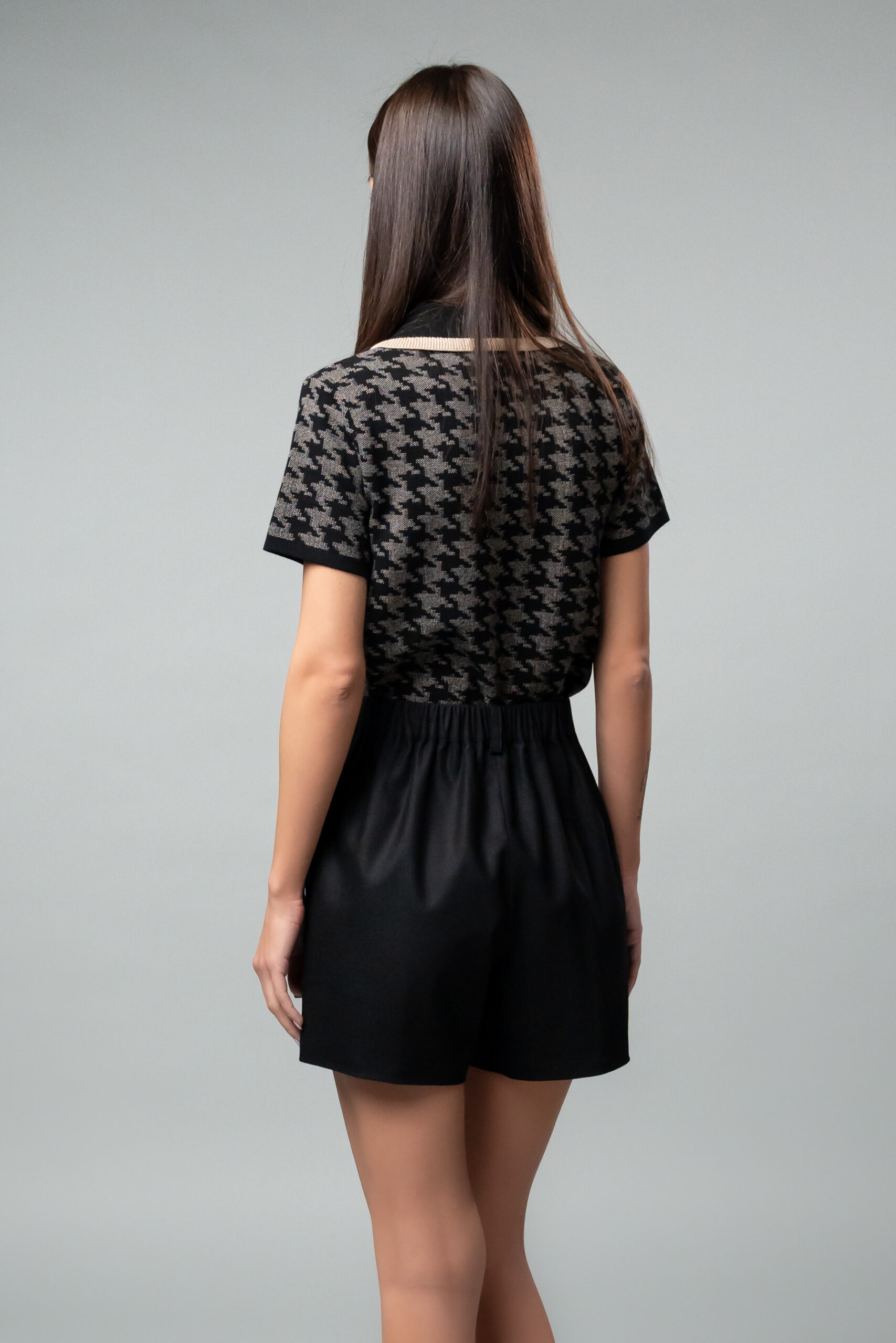 Дамски къси панталони с висока талия от TOTALLY ERECTED. Изработени от висококачествена вълнена материя, късите панталони съчетават удобство и усещане за стил. Високата талия подчертава силуета и осигурява комфорт през целия ден. Моделът е с ластик на талията, но има възможност да се добави и колан. Късите панталони имат два функционални джоба отстрани, а дължината им е подходяща, както за ежедневни, така и за по-елегантни визии. Съчетават се идеално със сакото от същата серия.