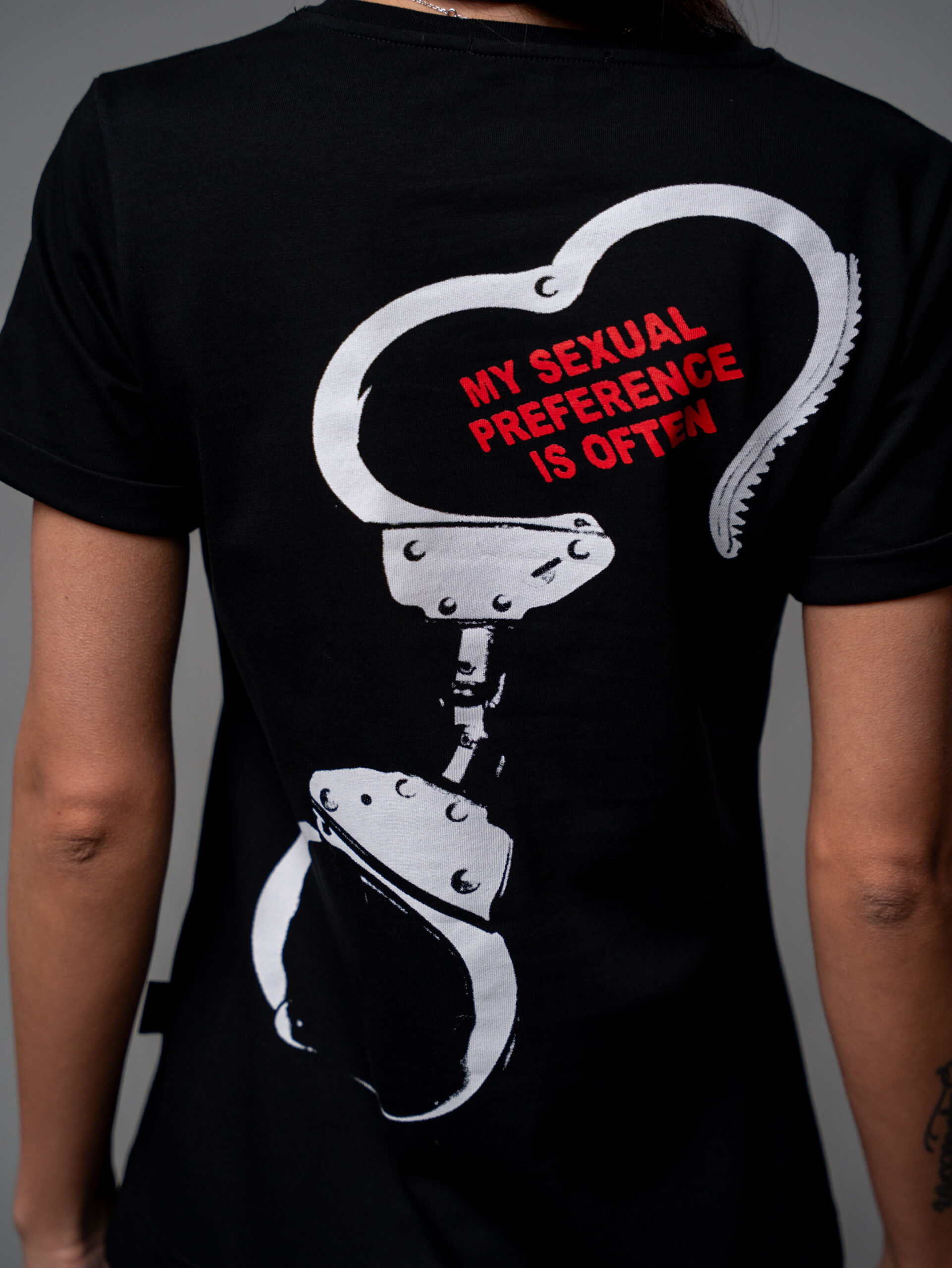 Гърбът с текста „MY SEXUAL PREFERENCE IS OFTEN“ добавя финален щрих за тези, които четат между редовете.