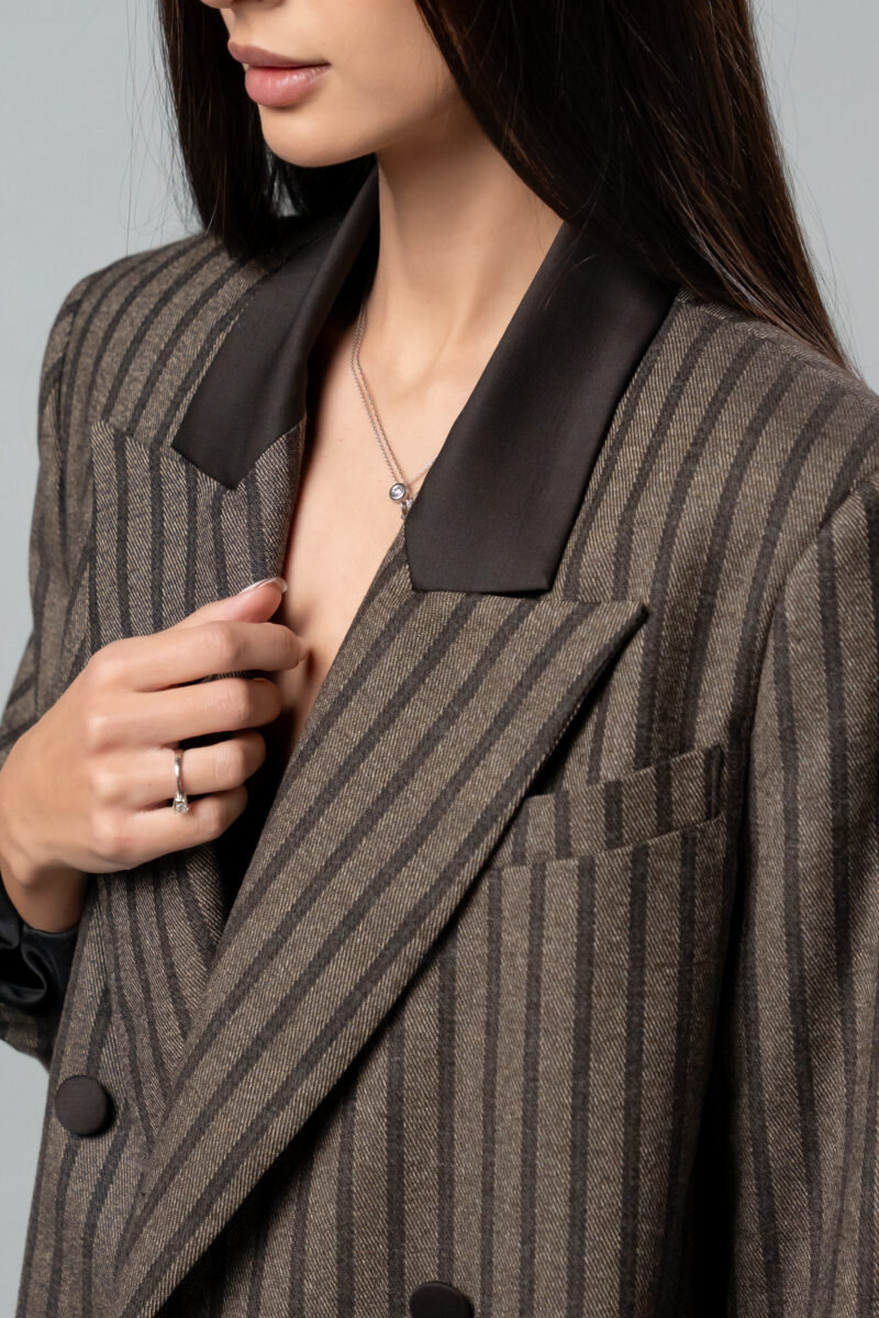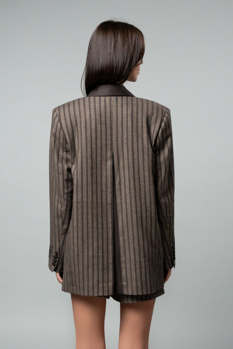 Кафяво раирано овърсайз сако с цепка на гърба