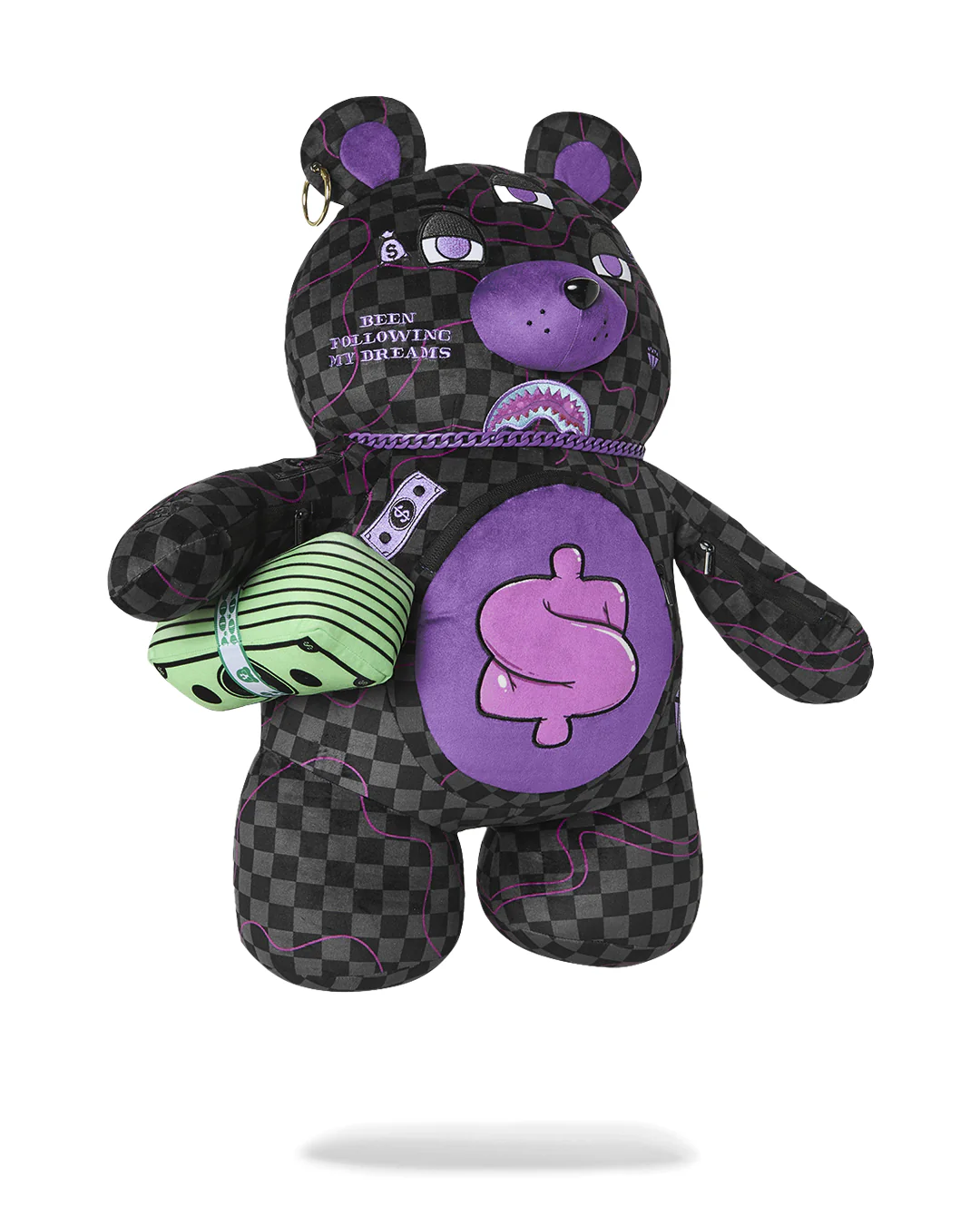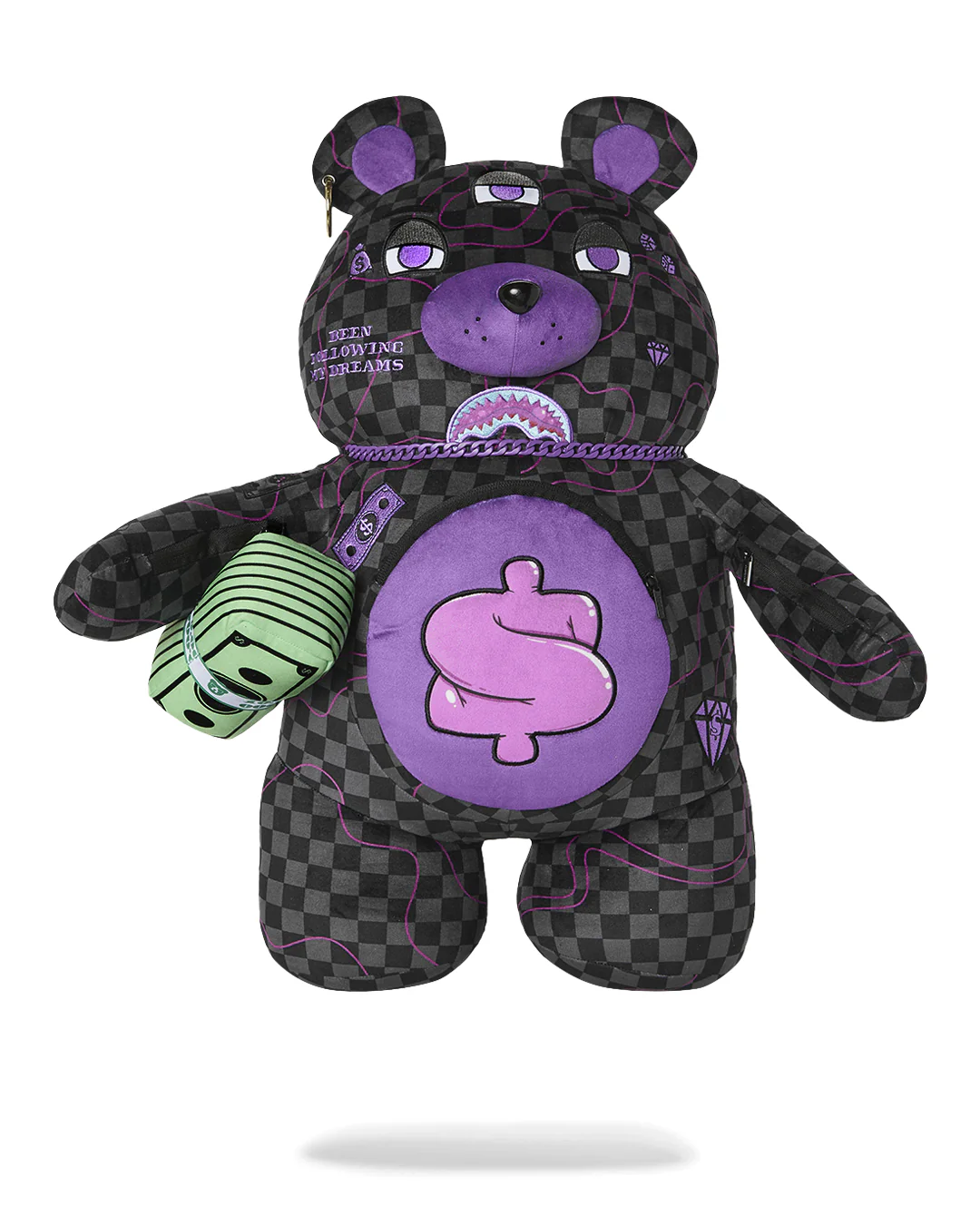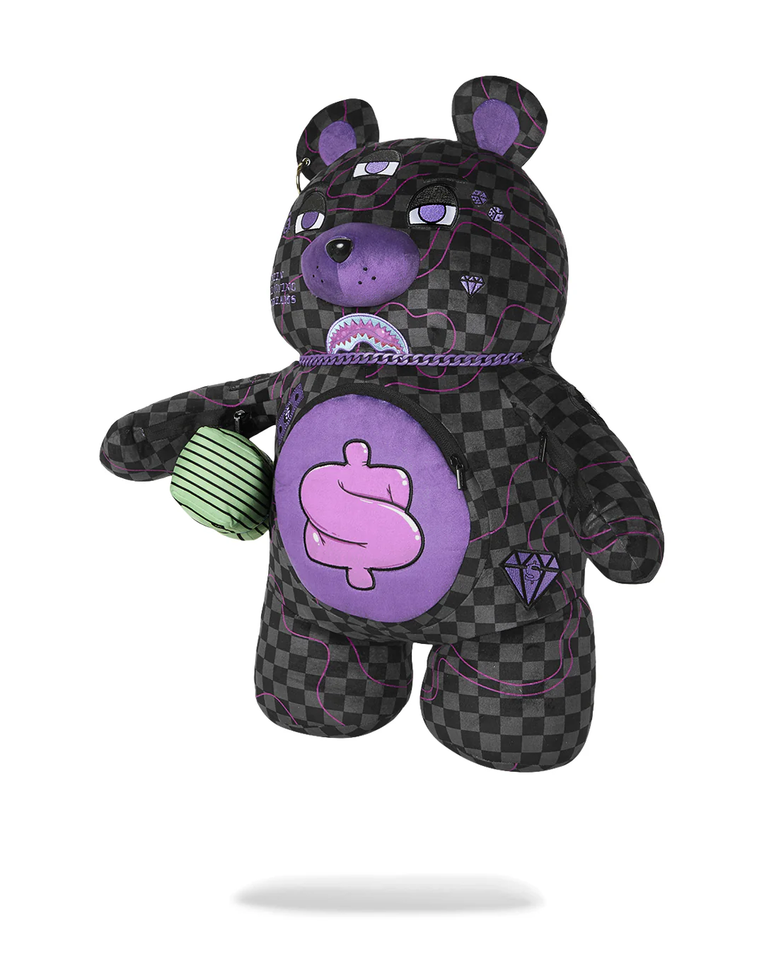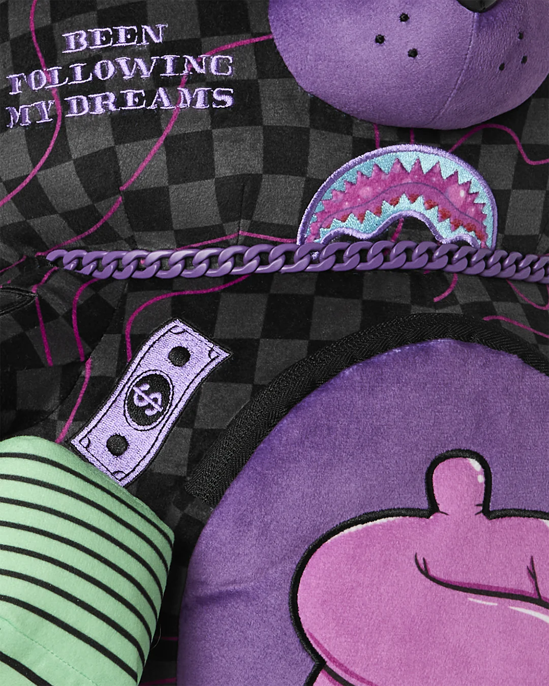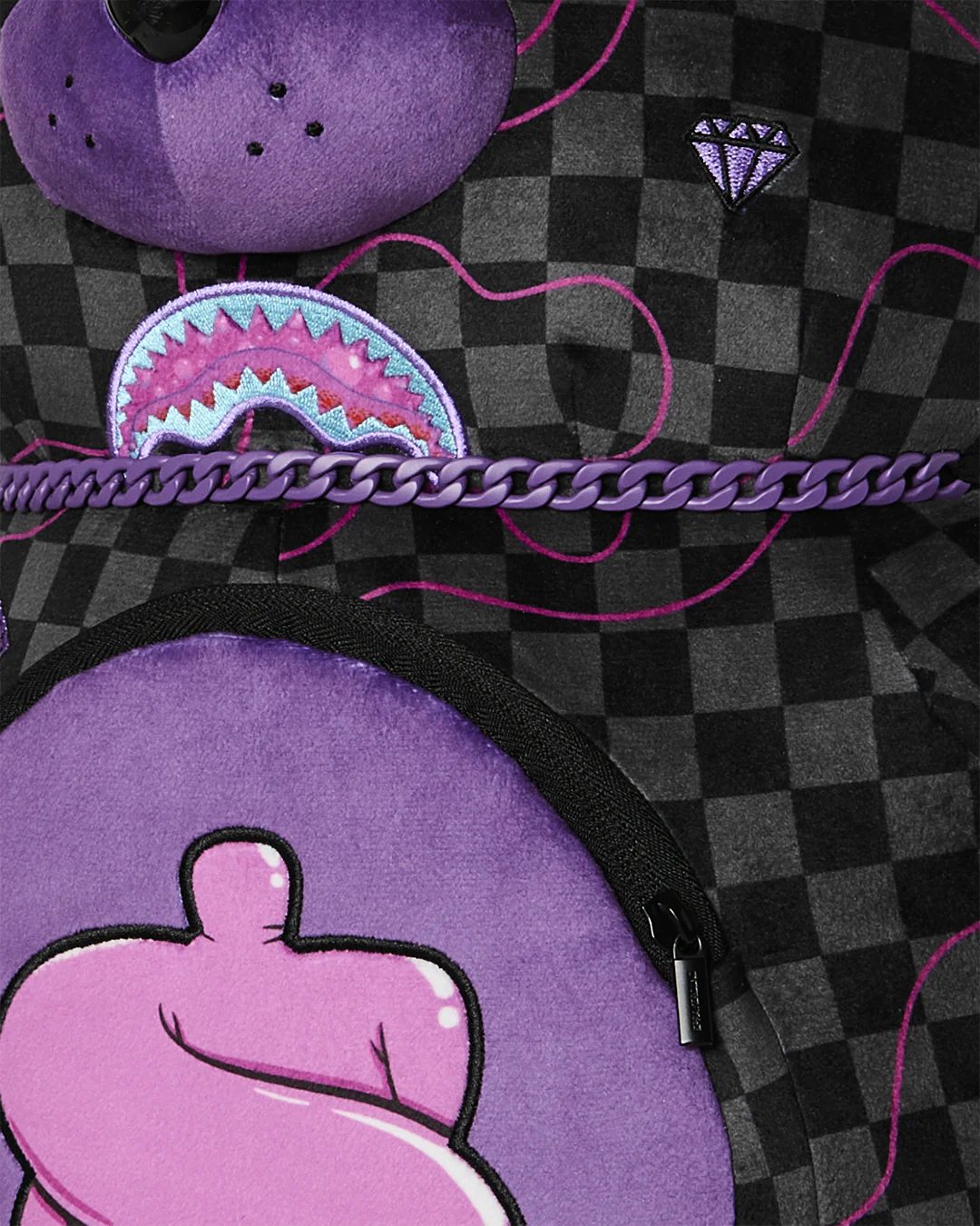 PURPLE SLIME TAKEOVER BEAR BACKPACK е плюшена раница с много детайли, лимитиран модел