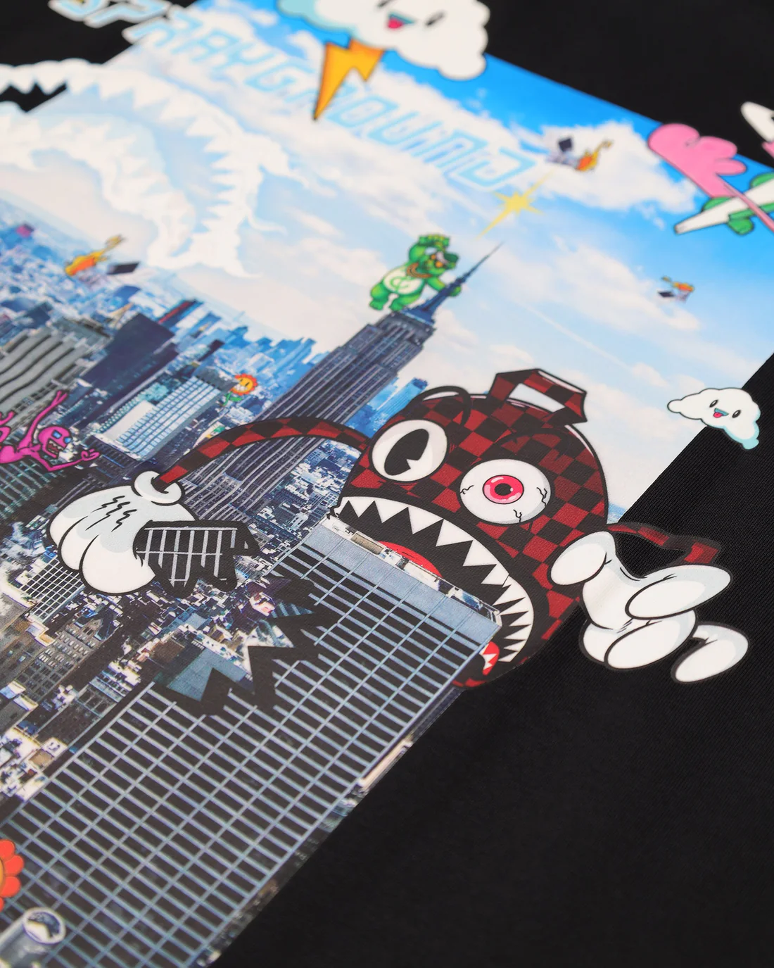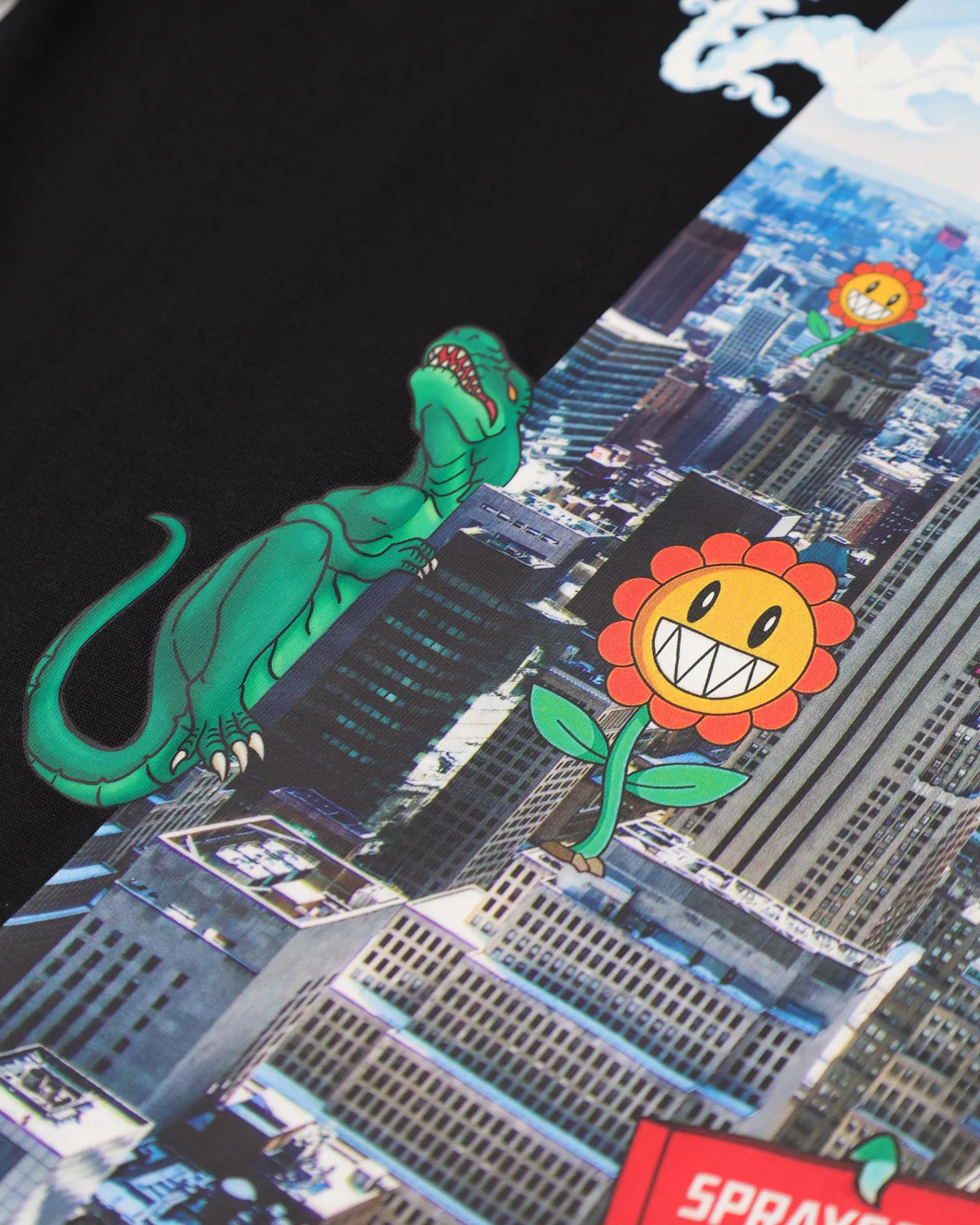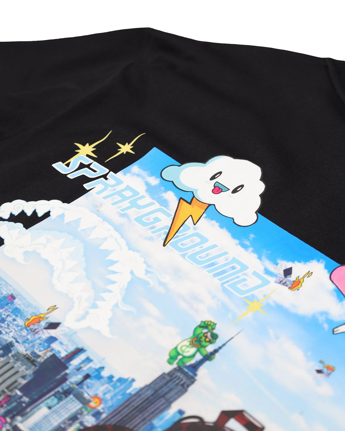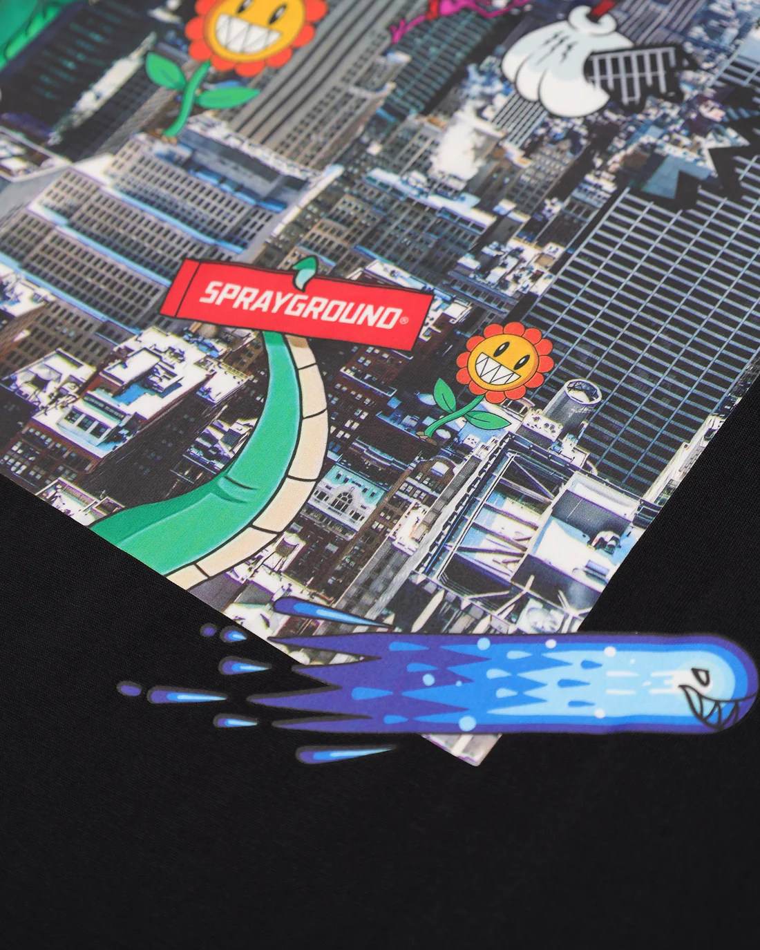 Черна памучна овърсайз тениска от Sprayground с отличителен дизайн и силно присъствие. Моделът е изработен от висококачествен памук, осигуряващ комфорт през целия ден. На гърба е разположен голям цветен принт, който придава смел и артистичен вид. Отпред тениската е завършена емблематичното Sprayground “mouth” лого за балансирана визия.